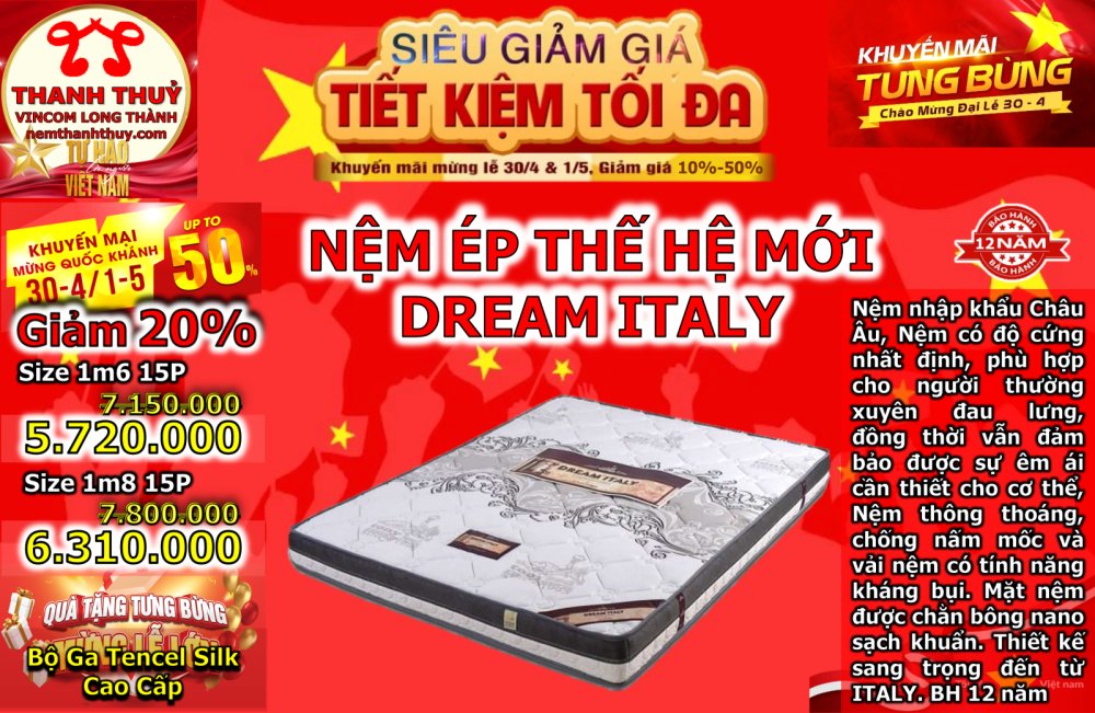 ✅ Nệm cao su tổng hợp và nệm foam giá giảm lên đến 50% + Quà tặng bộ ga lụa tencel cao cấp