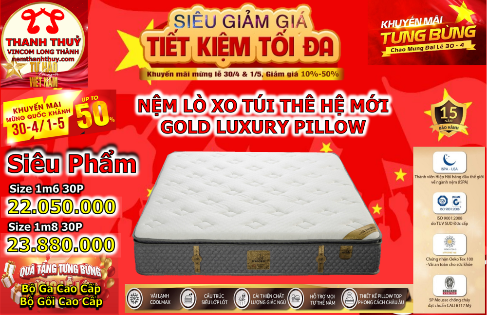✅ Nệm lò xo túi nhập khẩu tiêu chuẩn Mỹ Giá giảm hơn 40% + Quà tặng trọn bộ